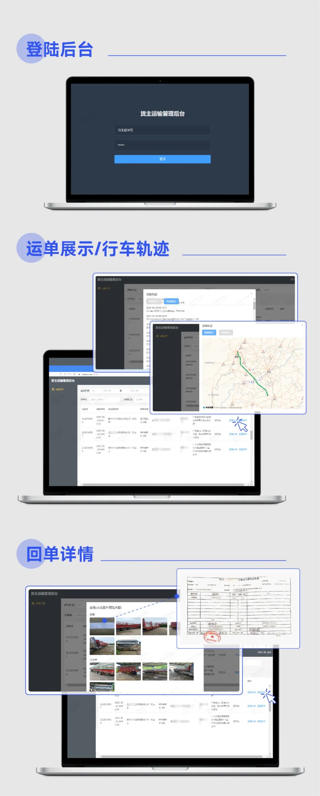 更值得一提的是,通过系统对接,路歌平台的货物在途轨迹还可同步共享给上游货主企业,不仅给了货主方优质的物流服务体验,还能为货主方的经营决策提供助力。